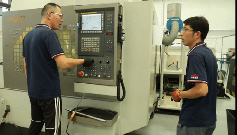 但也不是每一步都很順利,當(dāng)他遇到刀具發(fā)出一聲異響以后,(這聲音小編是一點兒沒有分辨出)立刻關(guān)停機器,小跑著找到自己的師傅。他直接說明了問題后,正在調(diào)機的師傅立馬來到他的機器前,耐心地幫他找出問題原因,并且教他如何處理,通過重新調(diào)試刀具,快速地解決了問題,小楊也露出了笑容。