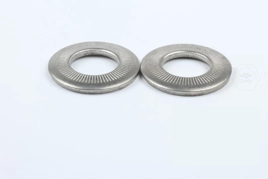 7、平墊圈硬度:一般常用于連接副中的平墊圈選用存在硬度偏低、沒有嚴(yán)格按照要求與螺栓性能等級相匹配。由于彈簧墊圈的硬度較高,一般在40-50HRC之間,如果平墊圈硬度很低,勢必加劇彈簧墊圈切口尖角嵌入平墊圈的程度。