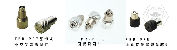 例如:FBR-PF12面板螺絲(面板緊固件)、FBR-PF6壓鉚式帶翼彈簧螺釘?shù)鹊取?/span>