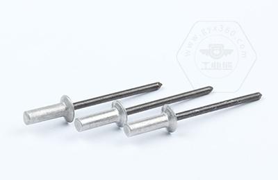 鉚接時,鉚釘釘芯由專用鉚槍拉動,使鉚體膨脹,起到鉚接作用。這類鉚釘特別適用于不便采用普通鉚釘(須從兩面進行鉚接)的鉚接場合。故廣泛用于建筑、汽車、船舶、飛機、電器、家具等產(chǎn)品上。