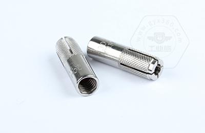 1、內(nèi)部有小鋼柱,尾部有內(nèi)絲扣,釘入墻孔后,將絲桿擰進(jìn),則小鋼柱被不斷擠壓,頭部爆裂開(kāi)來(lái)和墻孔產(chǎn)生摩擦力,從而固定。